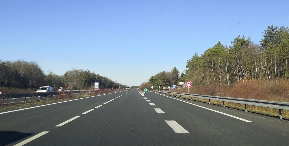 La ligne de rive côté droit sépare les voies de circulation de la bande d'arrêt d'urgence. Il est interdit de franchir cette ligne, sauf en cas d'accident ou de panne.